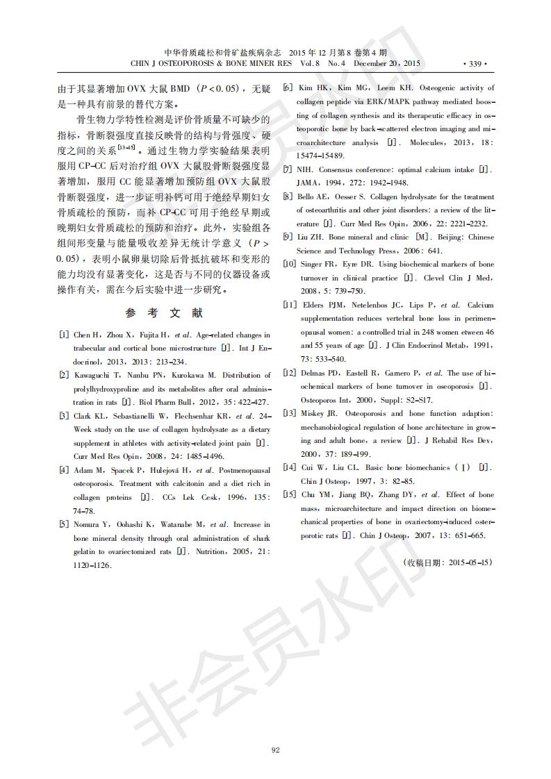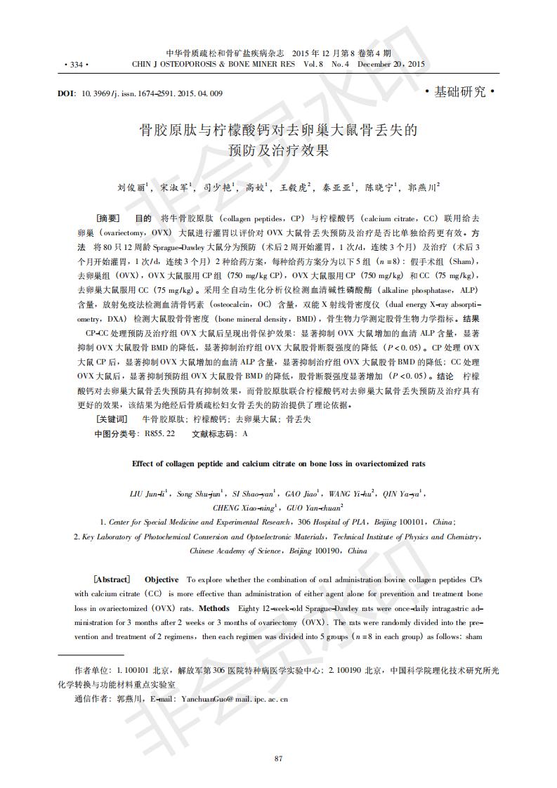 Preventive and therapeutic effects of collagen peptide and calcium citrate on bone loss in ovariecto