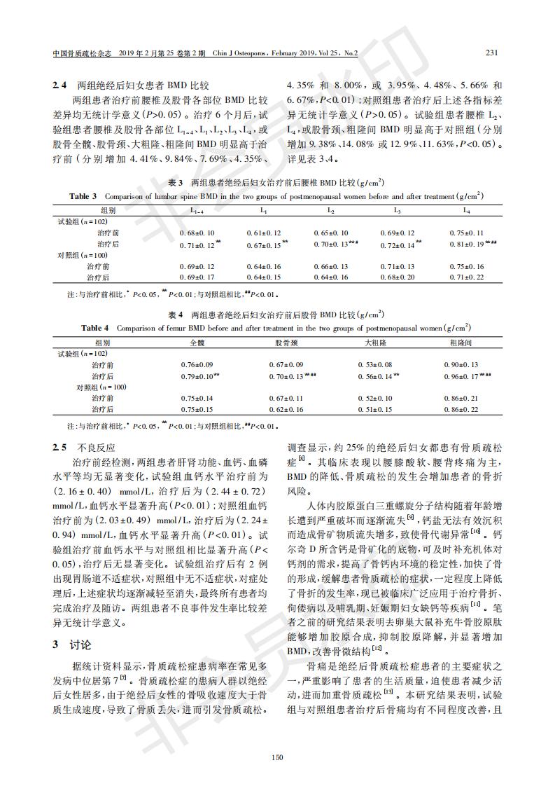Analysis of the therapeutic effect of collagen peptide combined with Calci D on postmenopausal osteo