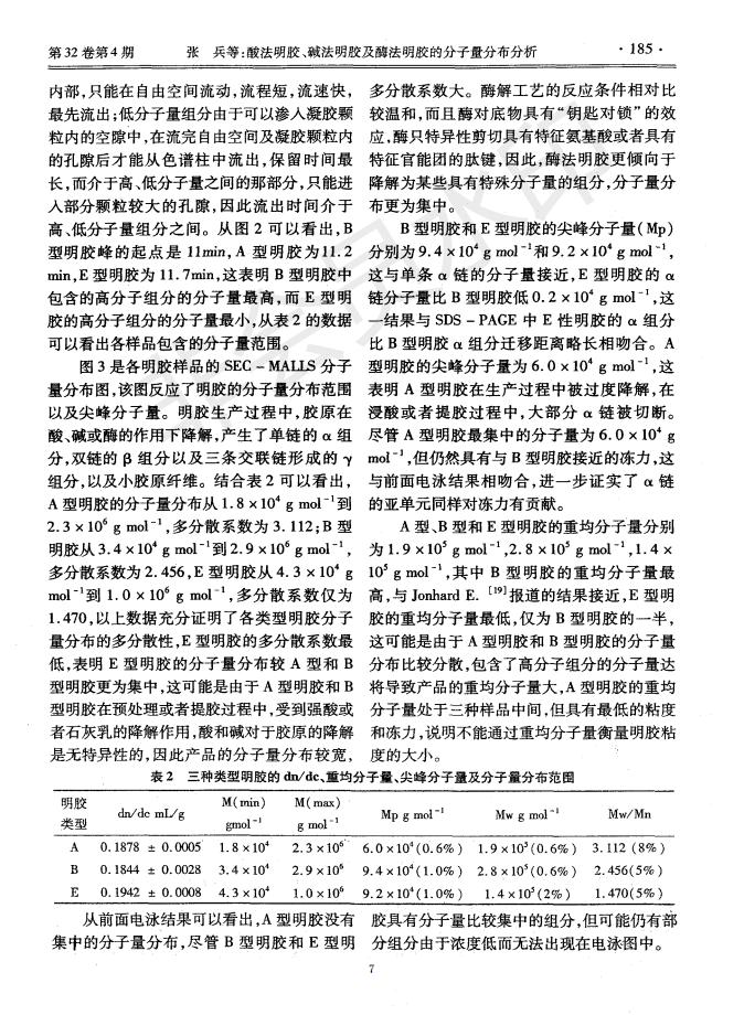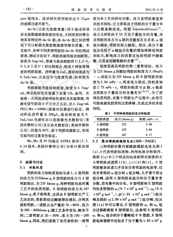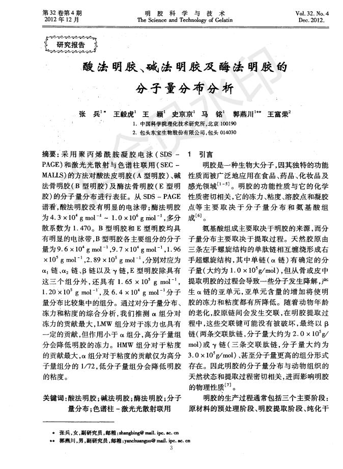 酸法明膠、堿法明膠及酶法明膠的分子量分析分布分析