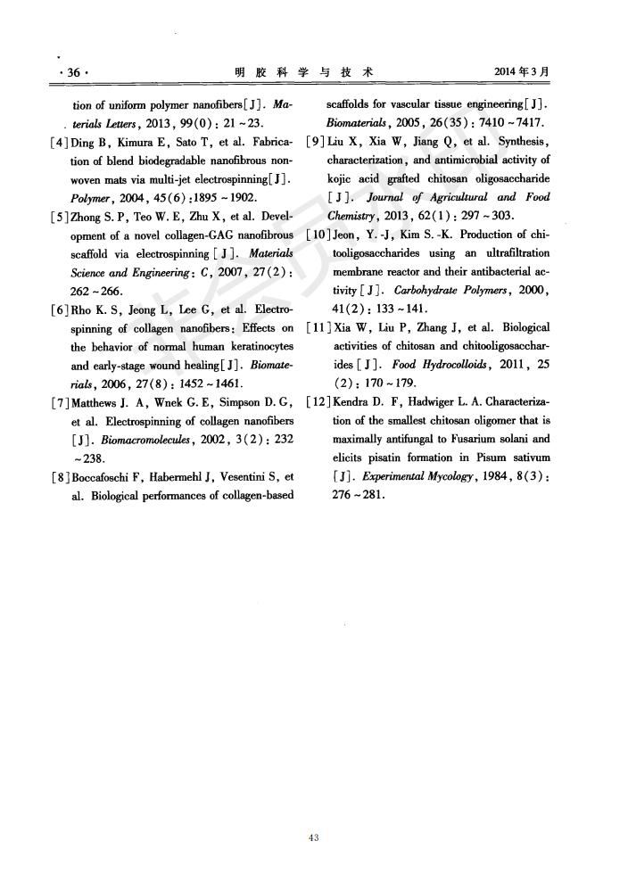 膠原蛋白肽/殼寡糖復合納米纖維的螺旋電紡制備及結構性質分析