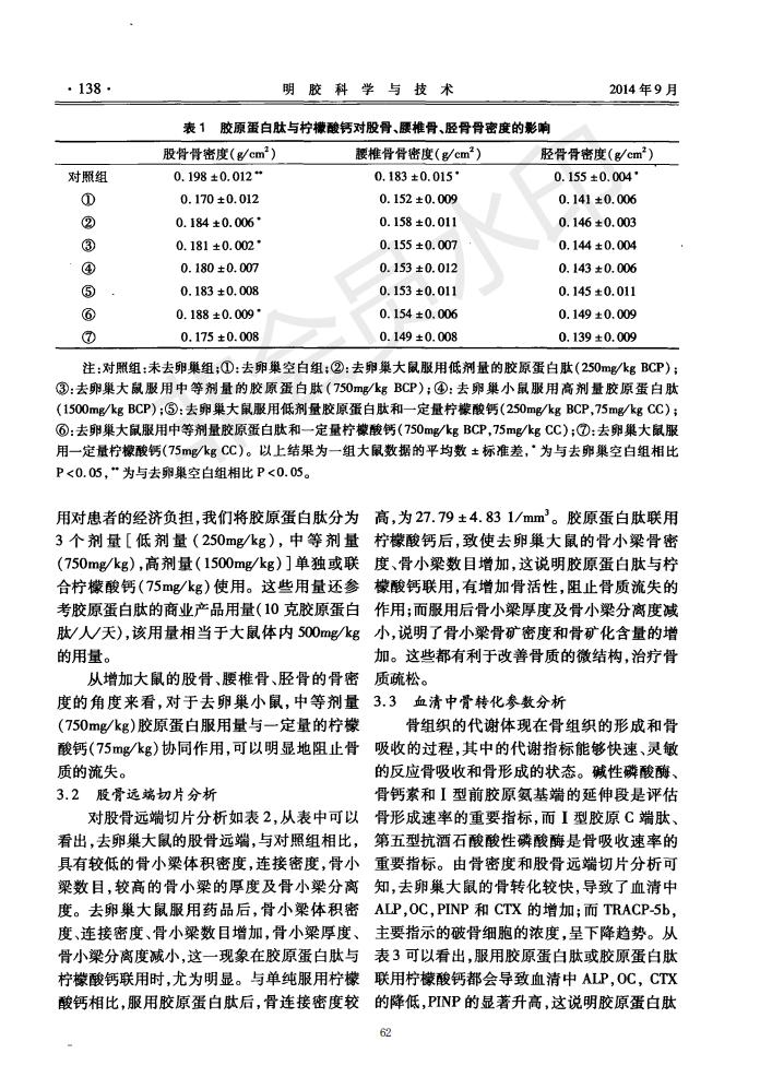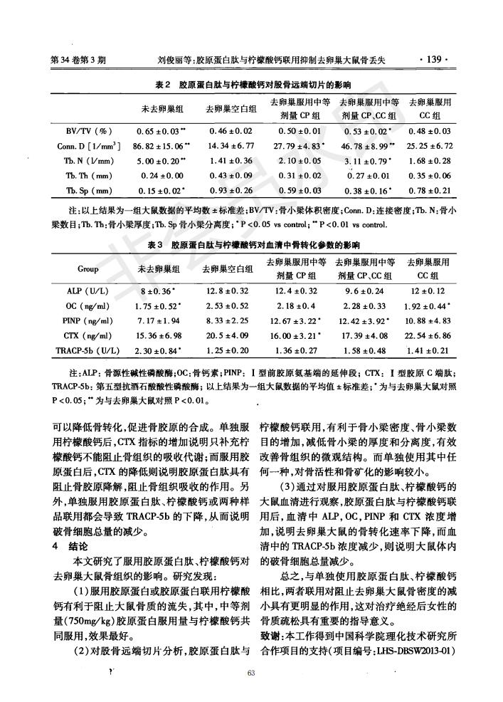 膠原蛋白肽與檸檬酸鈣聯(lián)用抑制去卵巢大鼠骨丟失