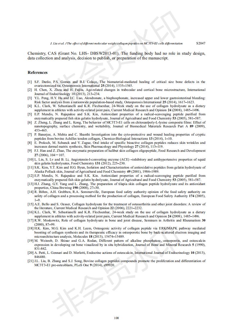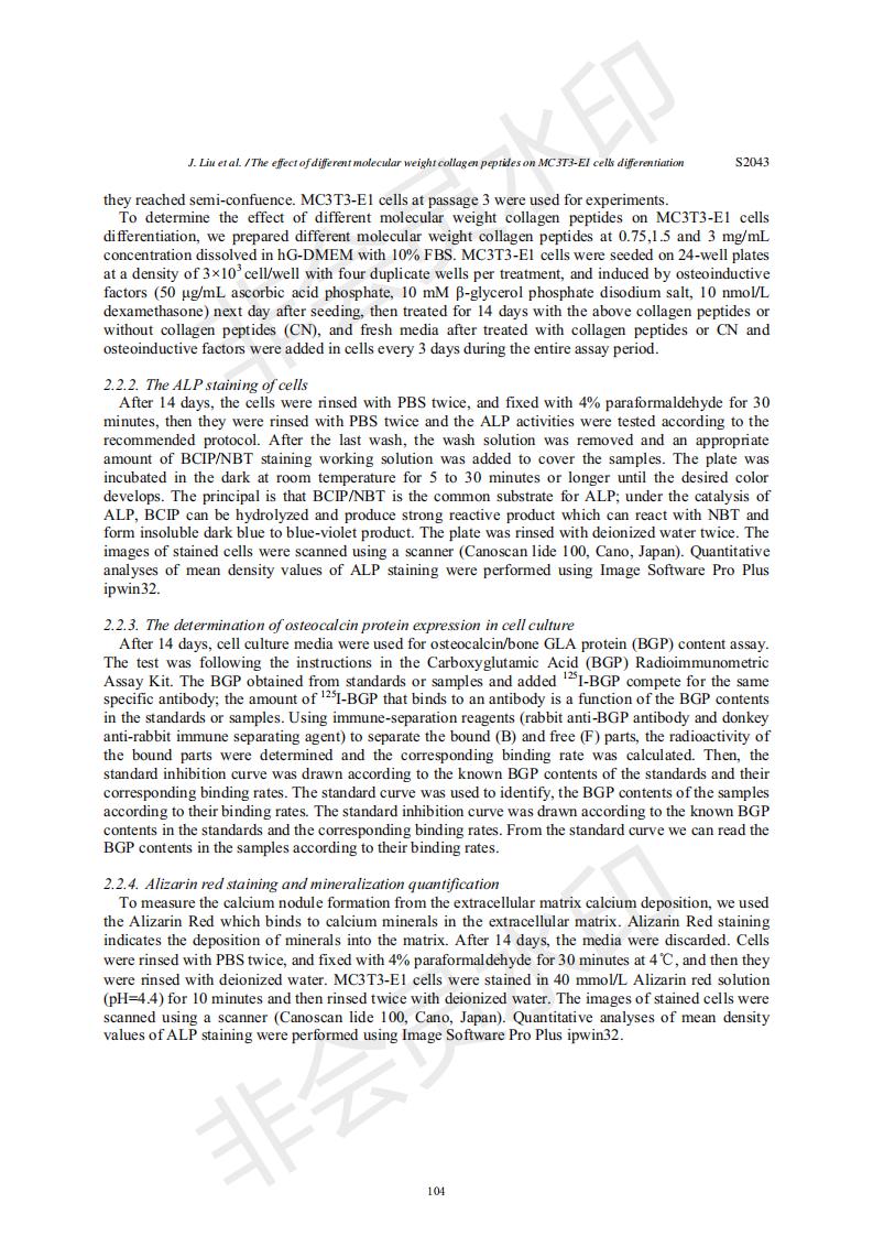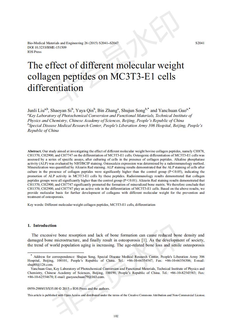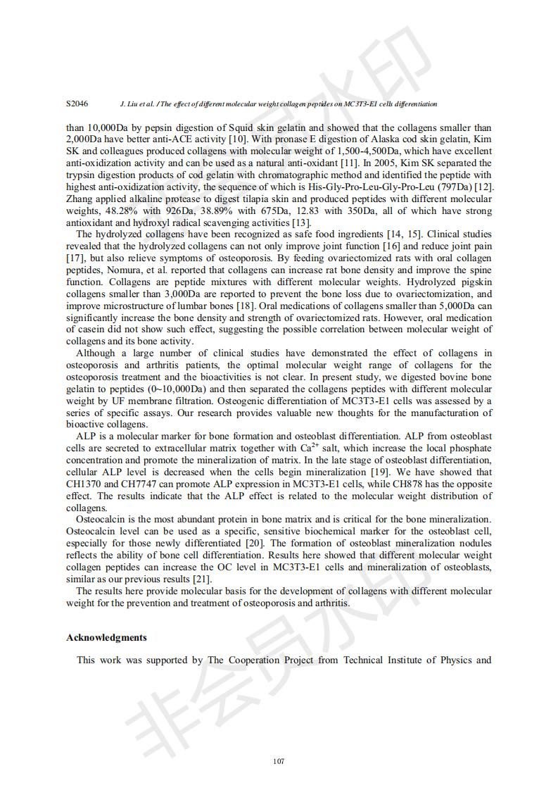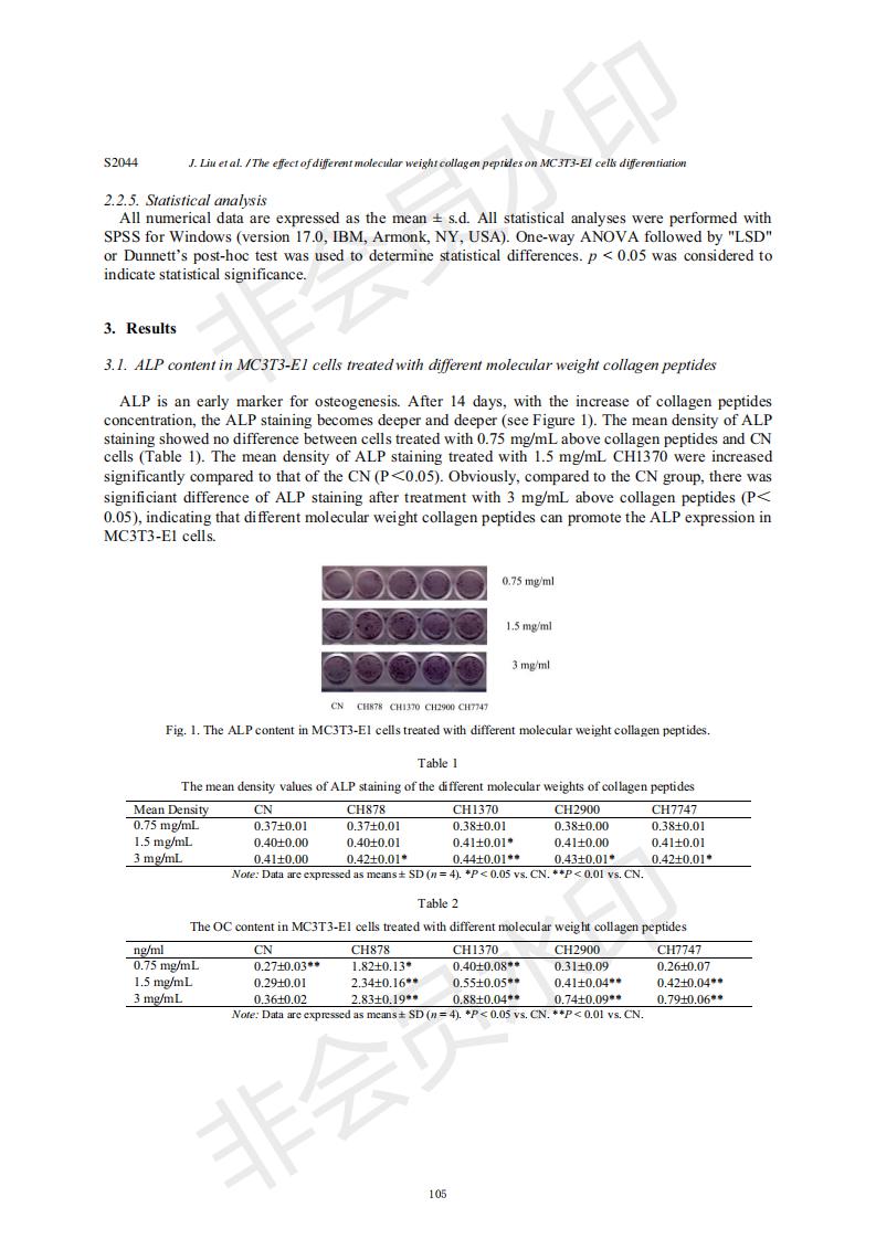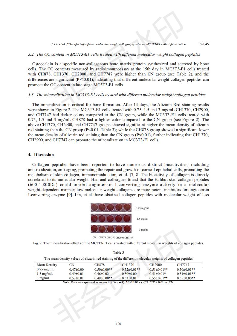 不同分子量膠原蛋白肽對(duì)MC3T3-E1細(xì)胞分化的影響