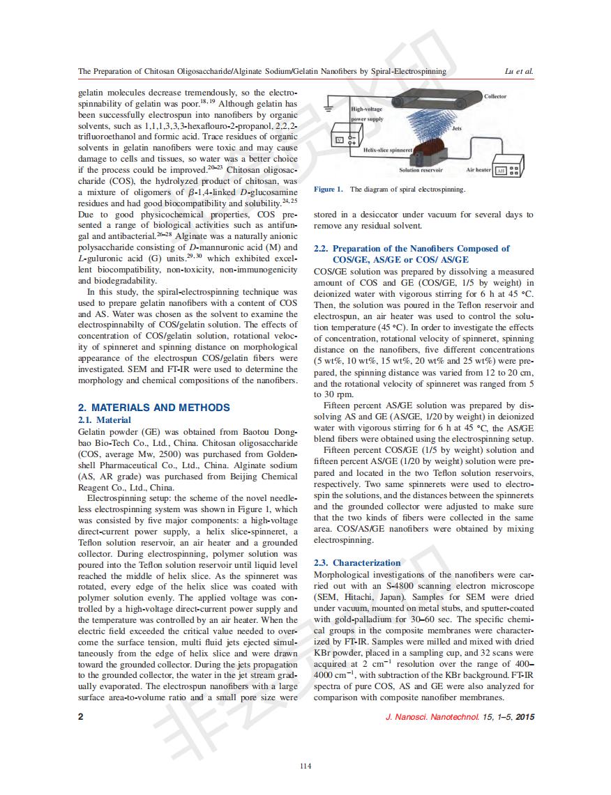 基于螺旋靜電紡絲技術(shù)的殼寡糖/海藻酸鈉/明膠納米纖維的制備研究