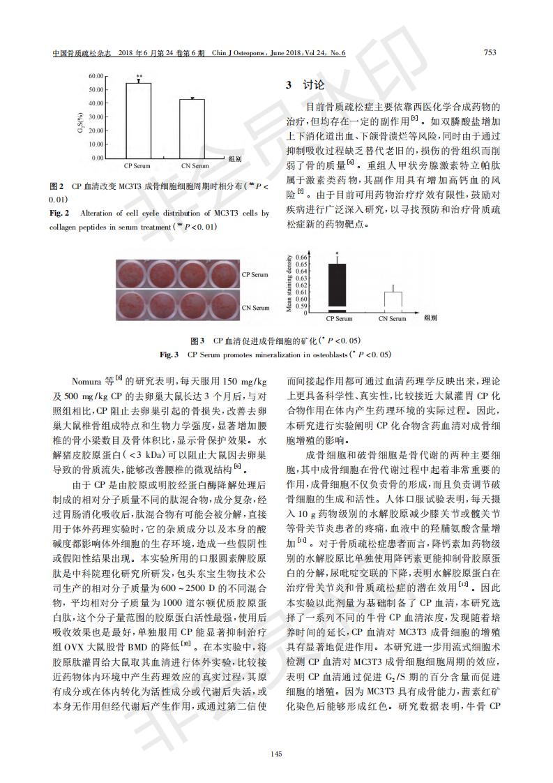 膠原蛋白肽含藥血清促進成骨細胞增殖和分化