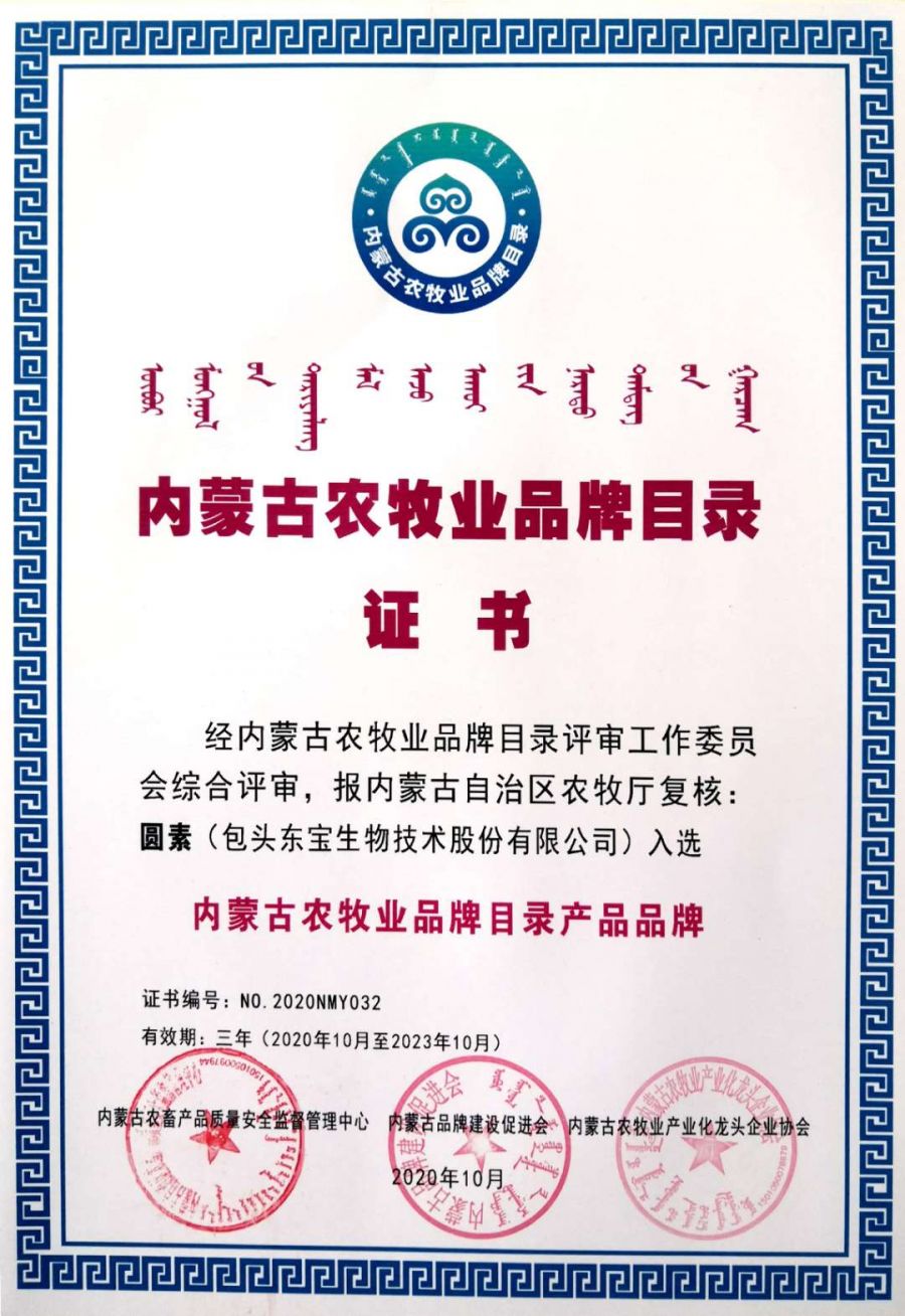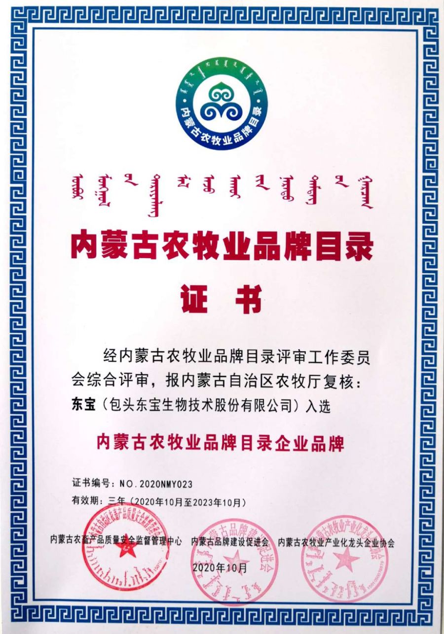 近日,內(nèi)蒙古農(nóng)牧業(yè)品牌目錄發(fā)布會在內(nèi)蒙古國際會展中心成功舉行,自治區(qū)農(nóng)牧廳和有關(guān)部門領(lǐng)導(dǎo)、組織實(shí)施單位負(fù)責(zé)人及品牌目錄企業(yè)代表近100人參加了發(fā)布會。現(xiàn)場發(fā)布了內(nèi)蒙古農(nóng)牧業(yè)品牌目錄名單,東寶生物的“東寶”和“圓素”成功入選,作為內(nèi)蒙古農(nóng)牧業(yè)品牌代表并頒發(fā)了證書。