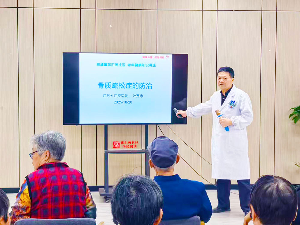 在胡埭社區(qū)衛(wèi)生服務中心(花匯苑社區(qū)幸福家園)活動現場,骨質疏松科葉萬忠主任以《原發(fā)性骨質疏松癥的診療》為題開展科普講座,用通俗易懂的語言從病因、危害、預防措施到治療方法,系統講解骨質疏松癥相關知識,現場互動頻繁、氣氛活躍。講座結束后,4位骨質疏松科專家組成咨詢團隊,為有需求的居民提供一對一免費健康咨詢,針對腰背疼痛緩解、規(guī)范用藥指導、康復訓練方案等問題耐心解答,并結合居民身體狀況給出個性化防治建議。同時,考慮到骨密度檢測是早期發(fā)現骨質疏松風險的關鍵,專家們還為骨質疏松高危風險的居民發(fā)放免費骨密度篩查券,引導大家通過科學檢測了解自身骨量情況,提前規(guī)避疾病風險。此次社區(qū)服務為居民提供了專業(yè)的健康指導,獲得現場群眾一致好評。