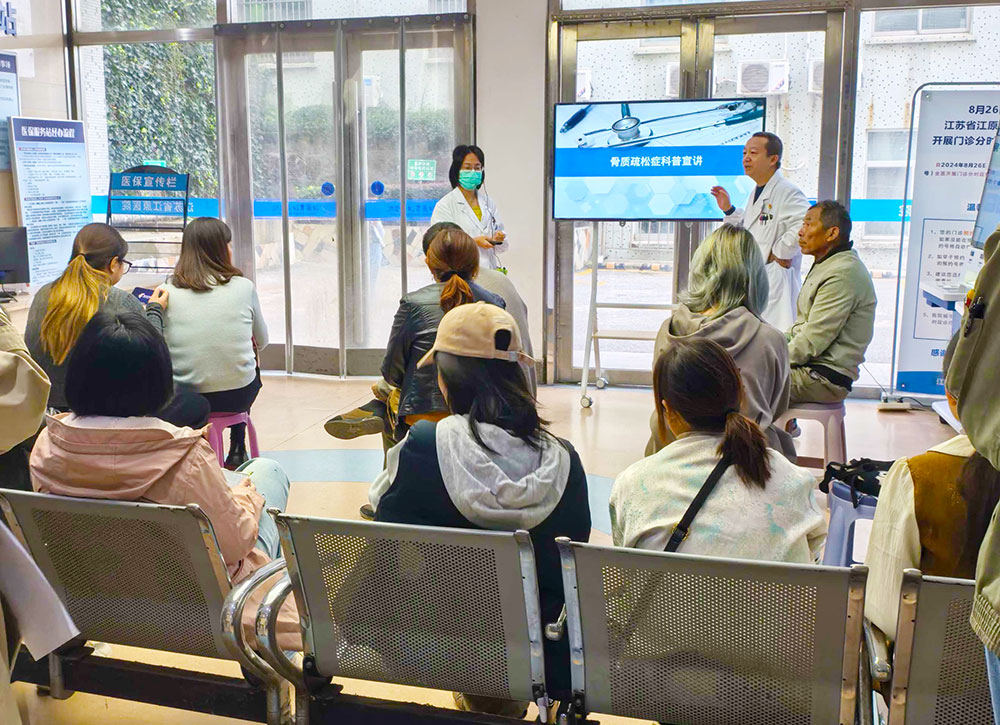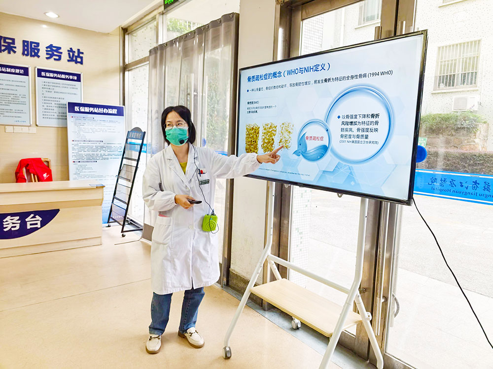 在江原醫(yī)院門診大廳,內分泌科潘懿副主任醫(yī)師開展了《骨質疏松癥的科普宣講》移動宣教活動。她圍繞骨質疏松癥的典型癥狀、科學診斷方法、規(guī)范治療原則及風險評估標準,為現場候診患者及家屬近距離講解健康知識。院內移動宣教將健康科普靈活地融入就醫(yī)場景,既提升了信息傳播的精準度,又改善了患者及家屬的就醫(yī)體驗。
